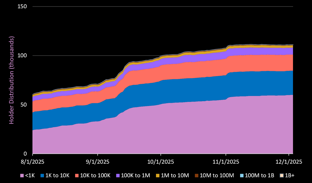 持有 PUMP 代币的钱包中,91% 的持有量不足 300 美元,这表明散户参与度很高,尽管其持有量仅占总供应量的一小部分。