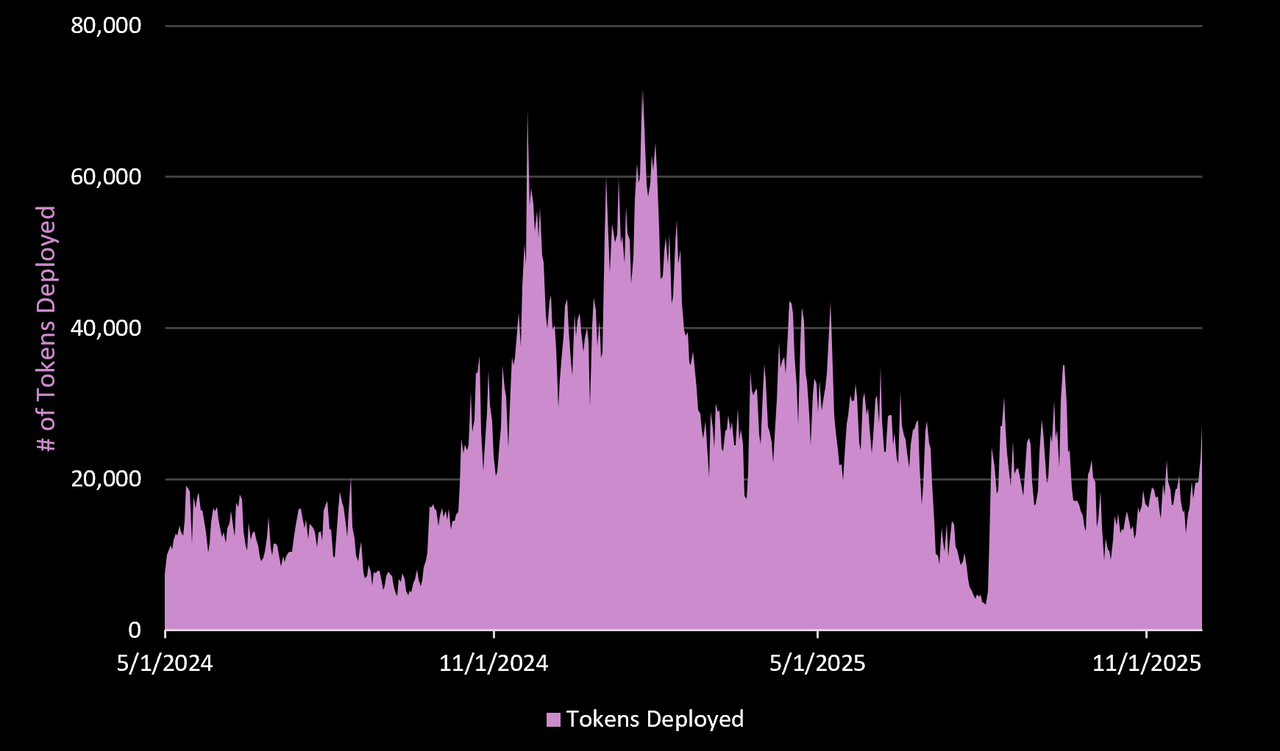 在市场狂热高峰期(第一季度),平均只有 1.07% 的代币能够成功上线。随着链上投机活动的减弱,我们似乎看到了更高质量的代币发行。这很有意思,值得关注——尤其是在人们对 Memecoin 的兴趣逐渐消退的情况下。
