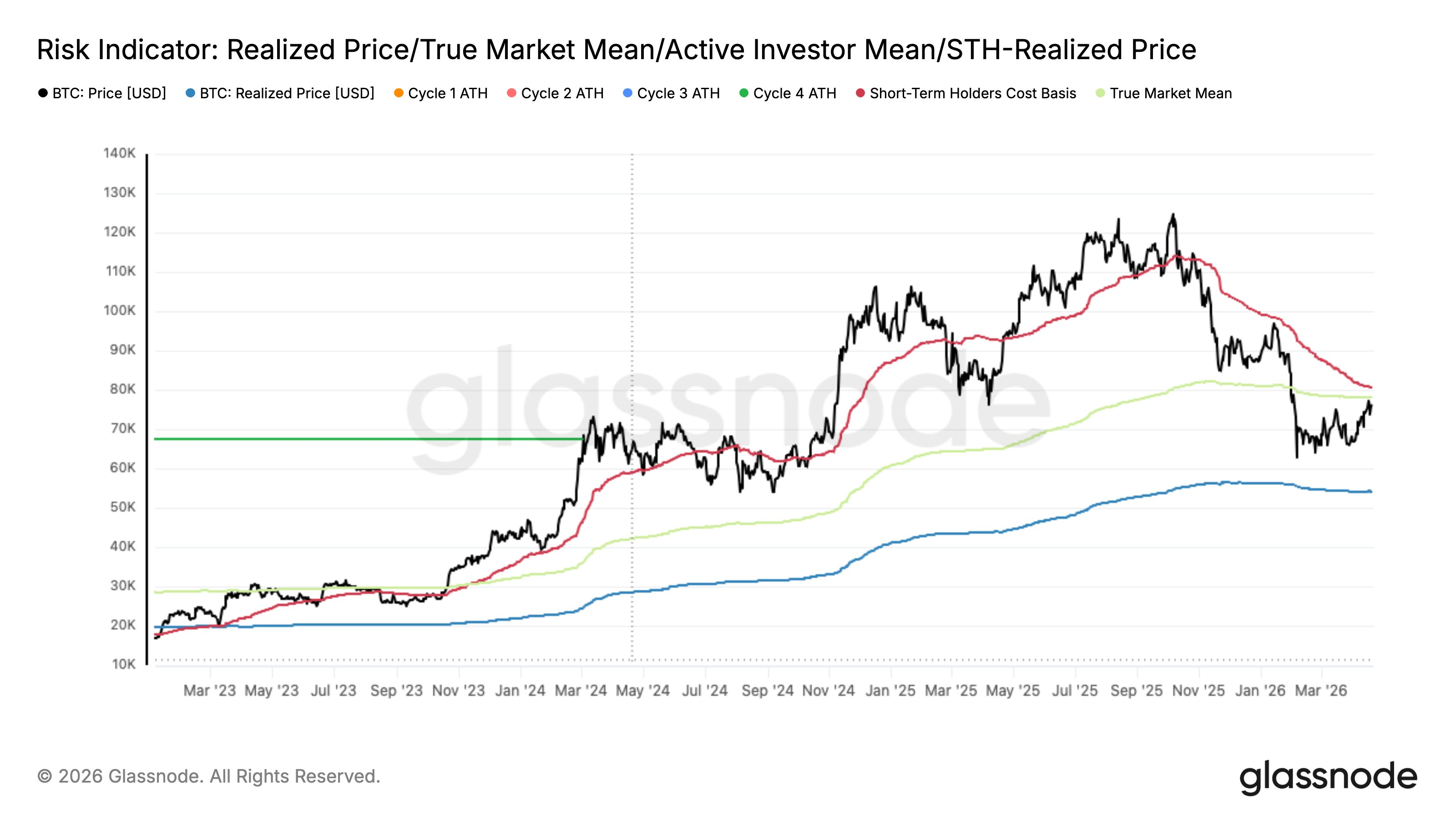 glassnode 发布数据图称,比特币收复 7.8 万美元关口,现货需求与 ETF 资金流入双双回归。空头仓位伴随负资金费率累积,形成轧空潜力。然而,过高的已实现利润与低迷的波动率释放谨慎信号,且 8 万美元附近的上行空间面临阻力。