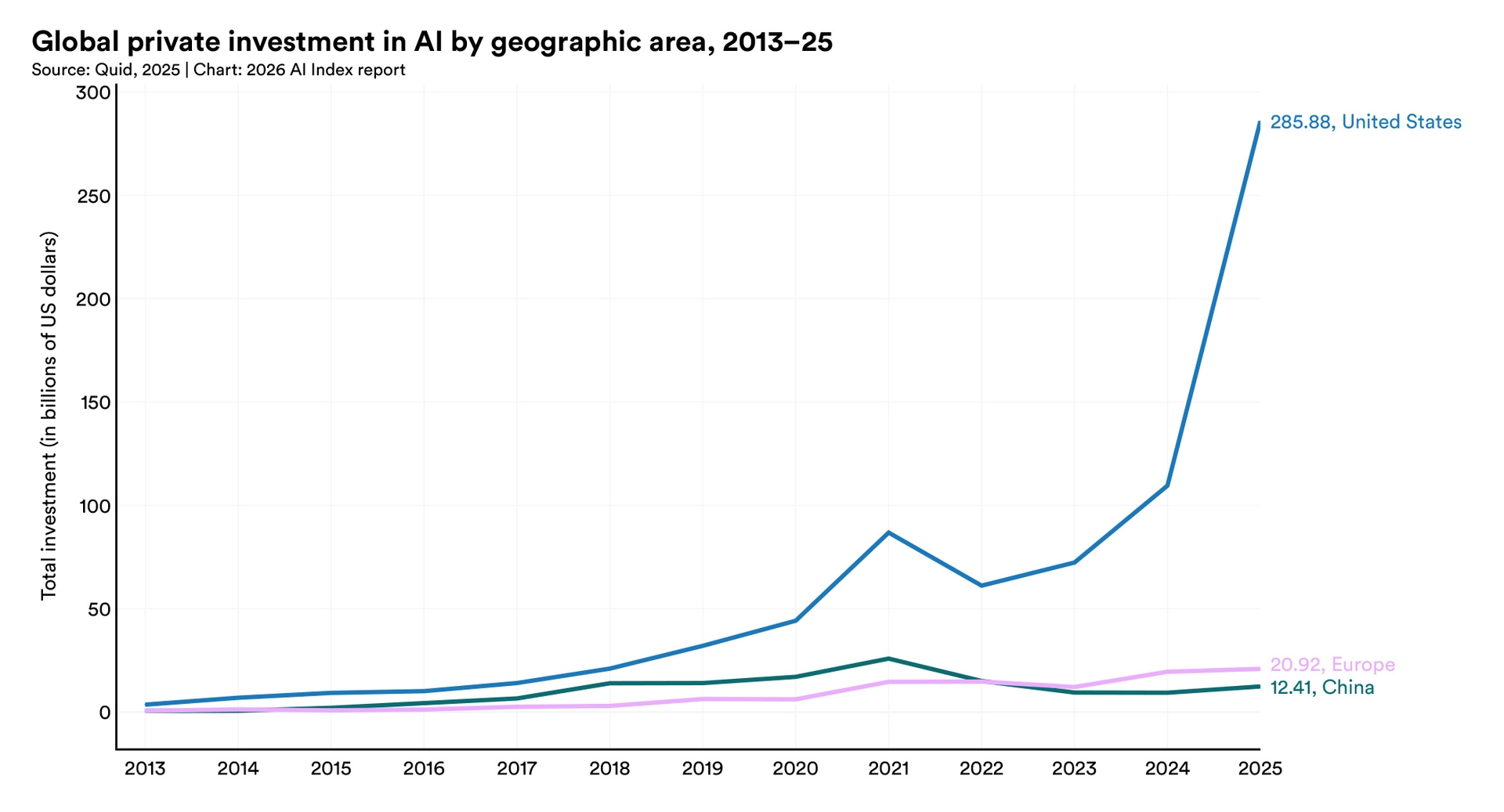 2025 年全球企业 AI 投资达到 5817 亿美元,同比增长 130%。其中私募投资 3447 亿美元,同比增长 127.5%。