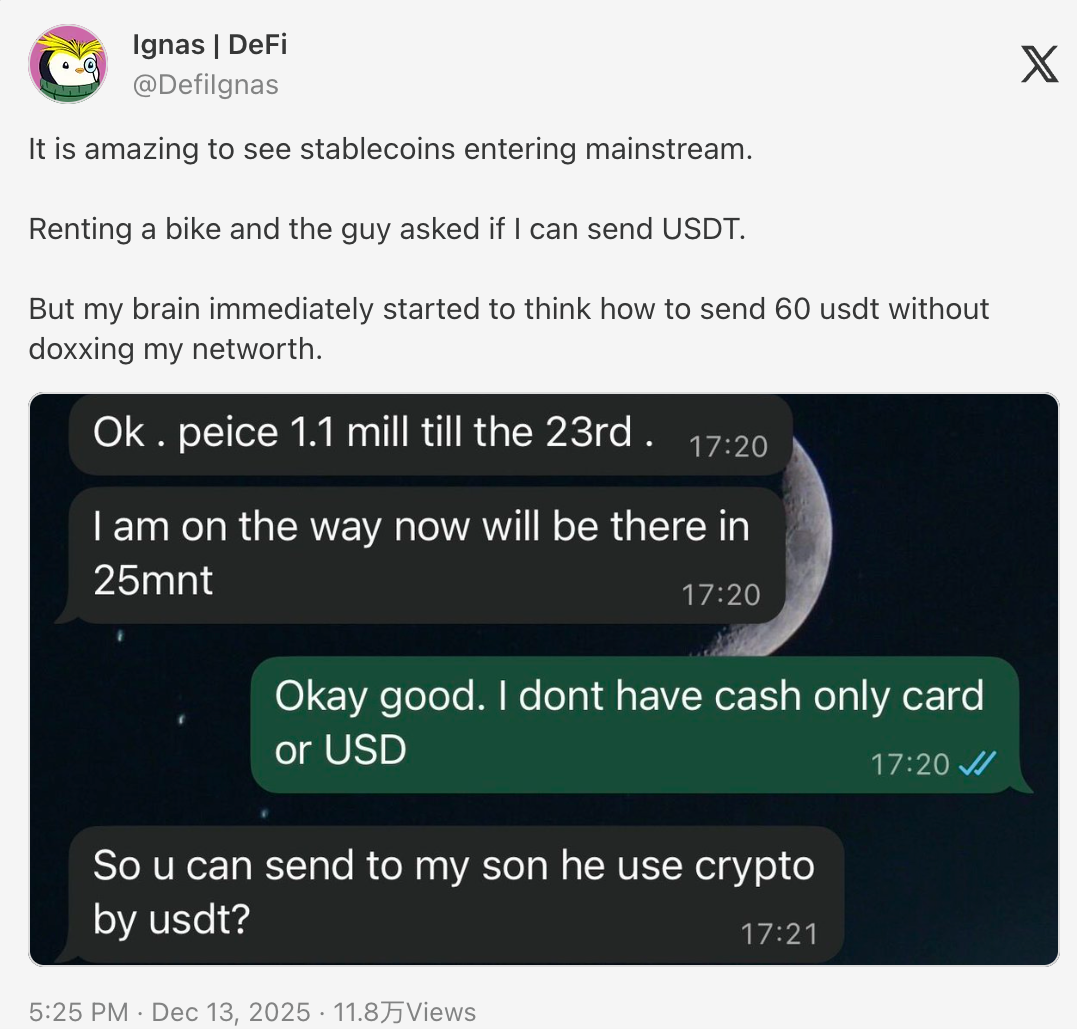 去年 12 月,我在巴厘岛旅行时,第一次被要求使用稳定币支付,这标志着稳定币已逐渐步入主流市场。