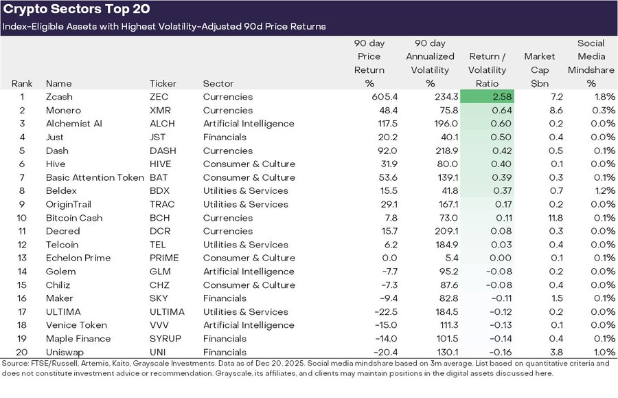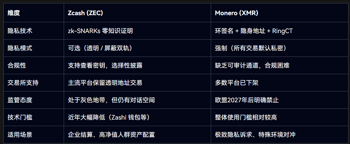 Zcash 在这一阶段的表现颇具代表性。它并不是隐私币中最激进的方案,却在新的语境下显得相对「合适」。可选隐私的设计,使其在保留隐私能力的同时,并未完全切断与合规体系的连接。市场对 ZEC 的重新定价,更像是对这条中间路线的再评估。