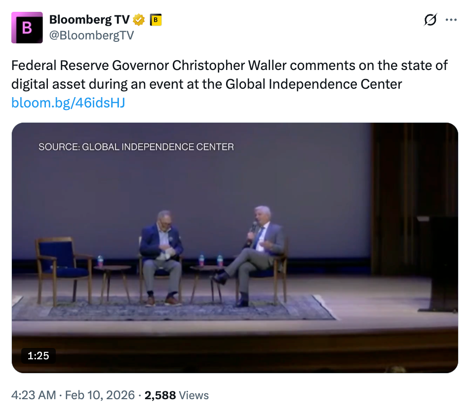 今日,美联储理事克里斯托弗・沃勒在全球相互依存中心会议中表示,随着近期市场出现抛售,由特朗普及现任美国政府带来的加密货币市场狂热情绪正在消退,抛售潮已经动摇加密货币这一资产类别。他还表示,加密货币监管方面的明确性在国会推进受阻,陷入停滞状态。随着他的发言,一场关于权力与财富的复杂叙事再度引发行业关注。