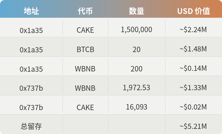 在 Venus 的两个仓位被清算后,我们核查了所有攻击者控制地址的最终代币余额: