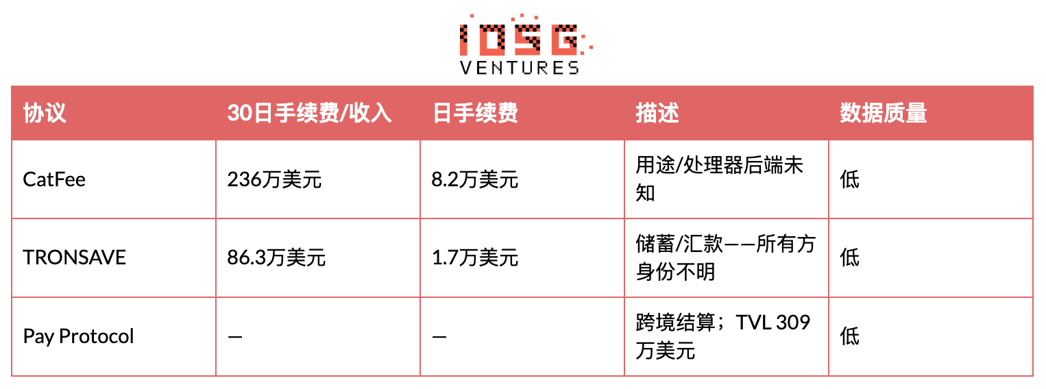 然后是影子经济。我们对 TronScan 的审计识别出几个未标注、产生可观收入、但完全没有任何英文文档的协议: