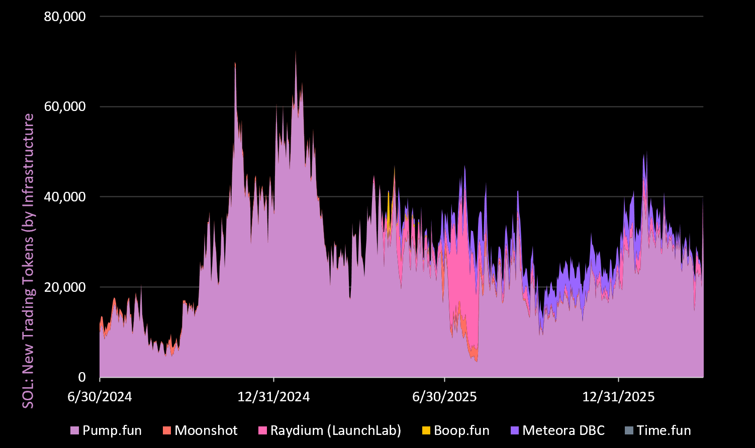 新交易代币 = 在 Solana 启动平台上创建的代币数量。