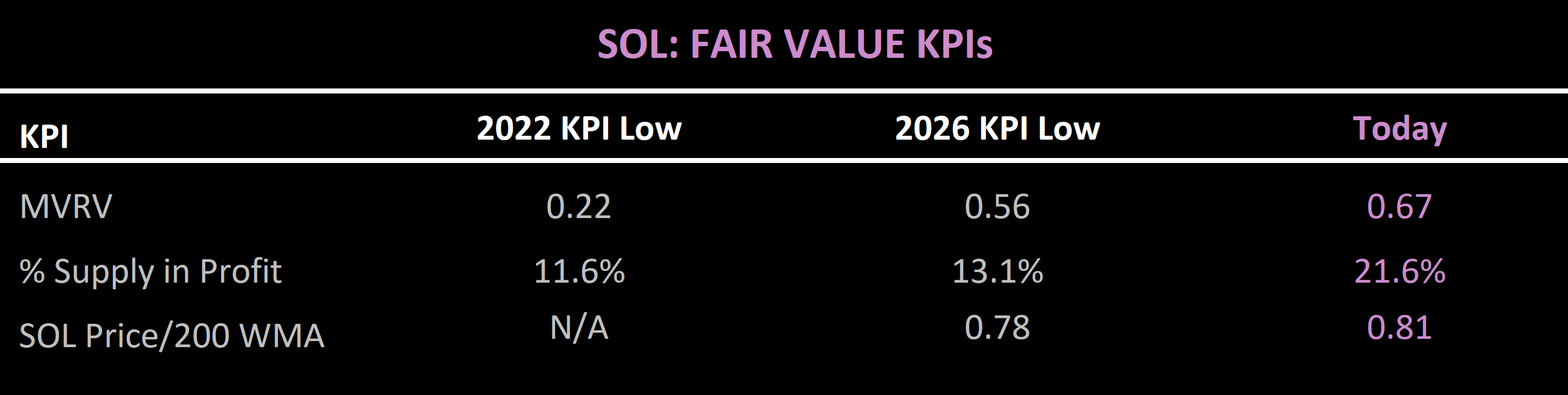 该图表也有助于可视化上一轮周期中投机达到最极端水平的时期:2024 年末至 2025 年初。自该时期以后,Solana 的社会关注度和链上活动一直处于下行趋势。短期内难以看到这一趋势逆转。