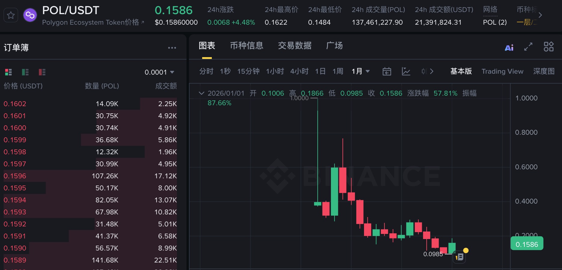 收购加密创企 Coinme 与 Sequence(单笔交易金额未披露),无不彰显着其破局决心。而市场似乎也已开始为这一转型投票:2026 年首月,POL 已悄然反弹超 57%。