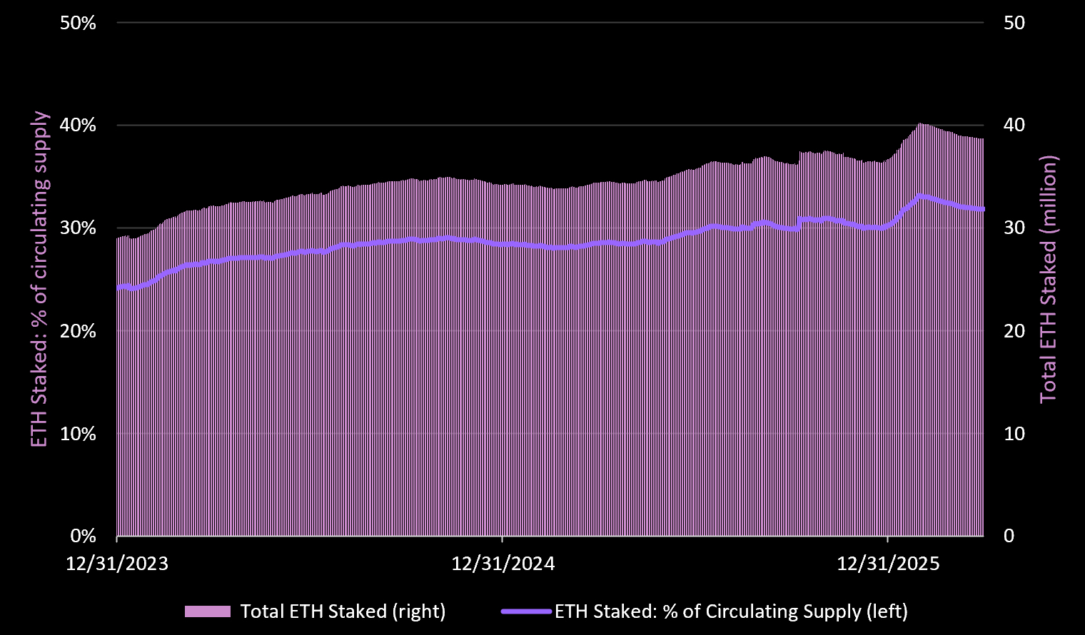 截至 2026 年 3 月 31 日,网络中共有3870 万枚 ETH被质押,占流通供应量的31.7%(创下历史新高)。这对代币持有者有何影响?