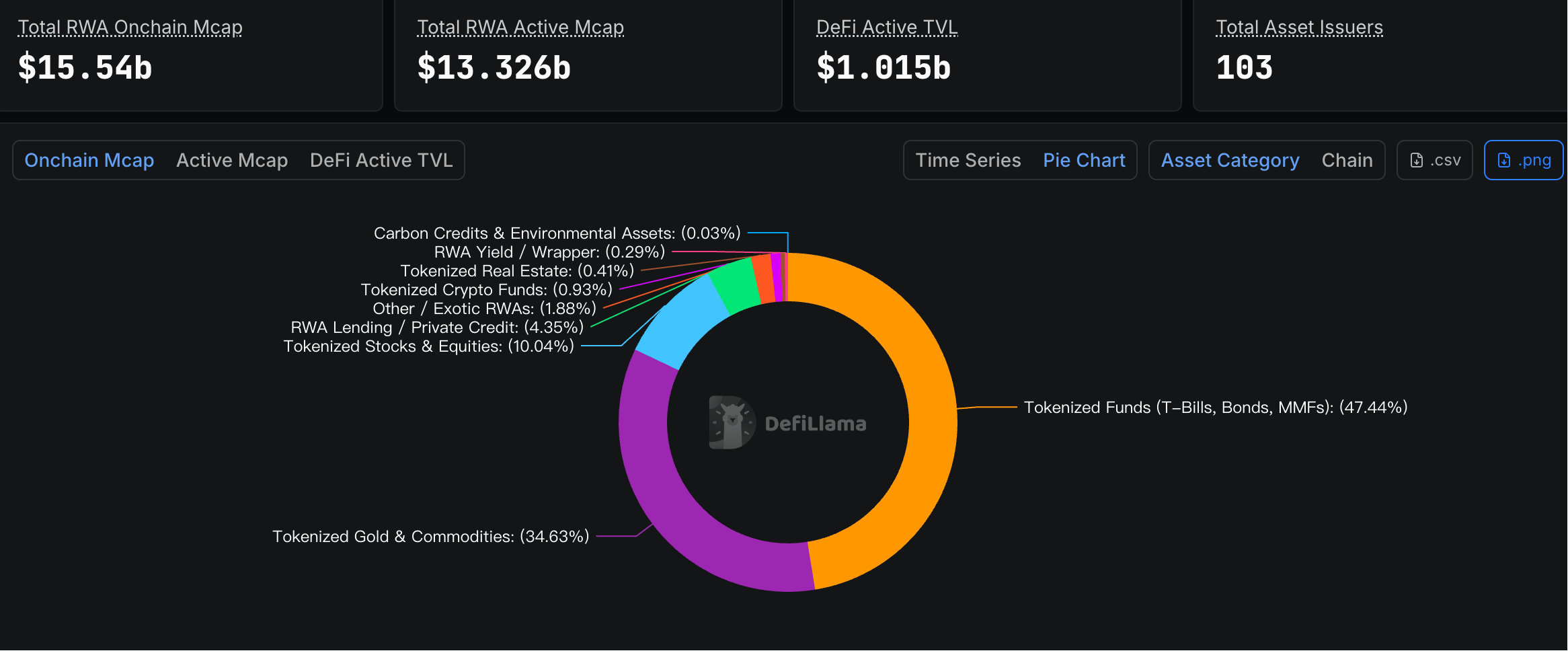 资产管理公司 WisdomTree 首席执行官 Jonathan Steinberg 也于本周二披露,该公司的加密货币业务已从实验阶段转变为核心战略重点,并且即将实现盈利。其代币化资产规模已从约 3000 万美元增长到约 7.5 亿美元,并且已扩展至 Solana 等新的区块链。DeFiLama 数据显示,链上 RWA 总市值目前约为 155.4 亿美元。