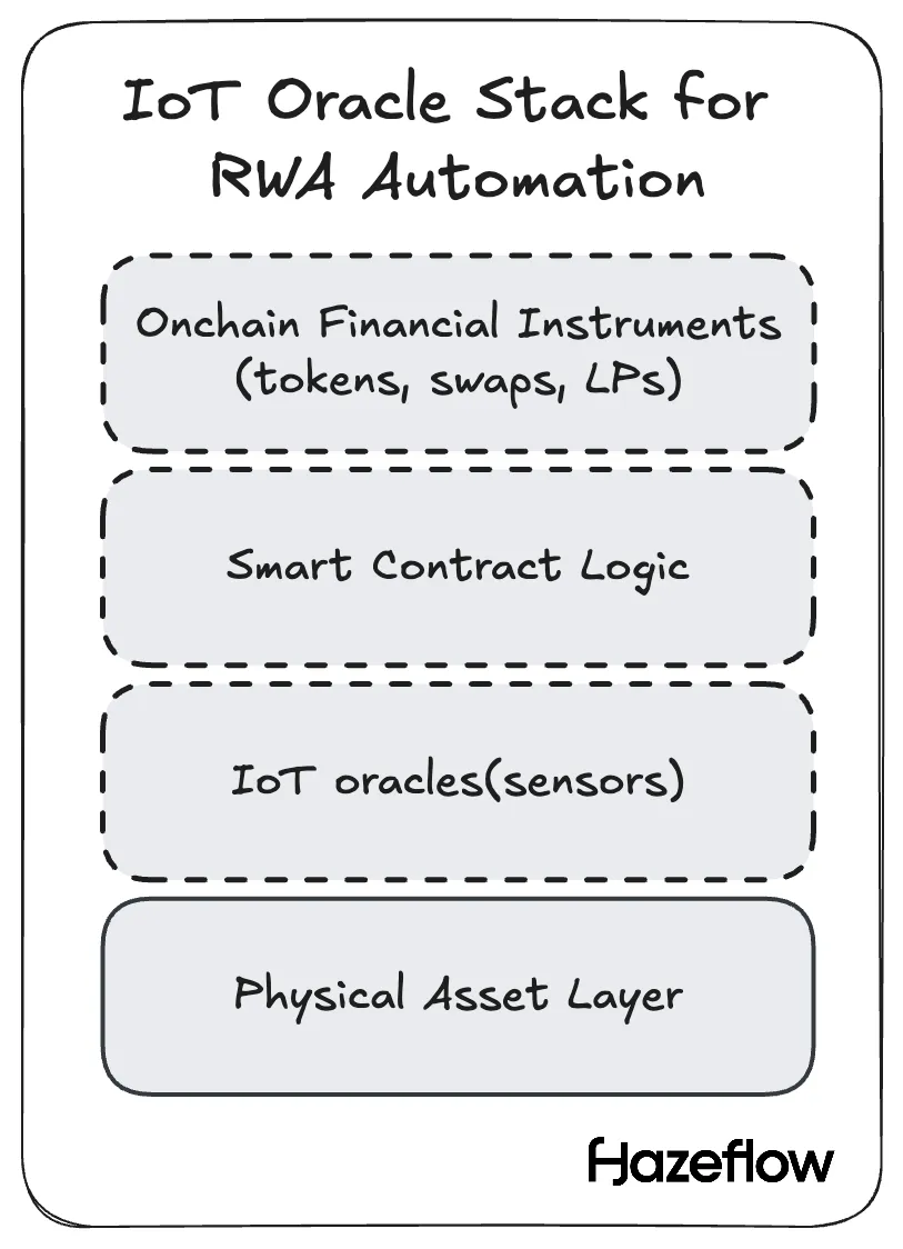 这些跨资产产品在传统金融中由于数据孤岛和不同的监管而难以实现,但链上协议使其变得简单。物联网预言机提供了所需的连接组织:通过实时验证每个资产的性能,让这些多样化的 RWA 代币能够在机构级条件下进行交互。