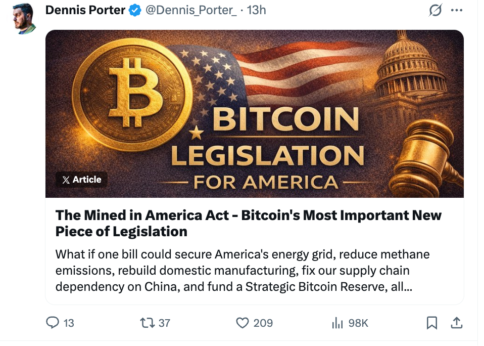《美国挖矿法案》的提出,并非单一的产业政策调整,而是美国在加密货币领域「产业与金融」双重战略的集中体现。在产业维度,中本聪行动基金首席执行官兼联合创始人 Dennis Porter 指出了当前美国加密挖矿产业的核心痛点,即高度依赖硬件供应链。