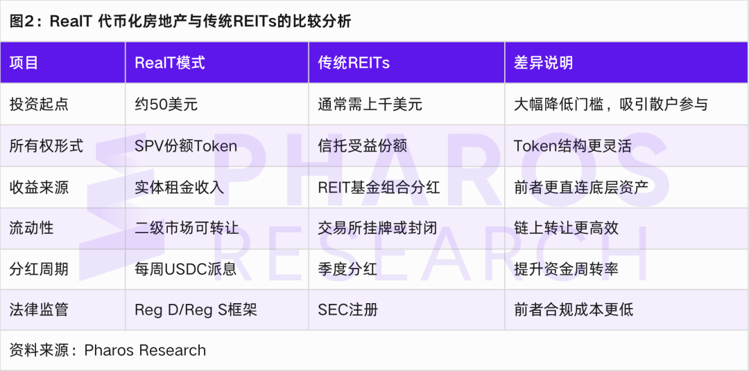 与传统 REITs(房地产信托基金)相比,RealT 模式的创新在于: