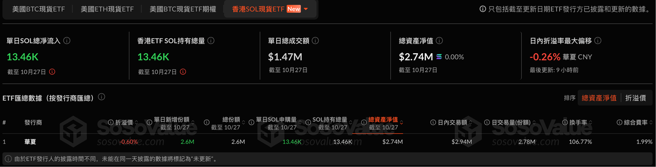 昨日,香港首个 Solana ETF「华夏 Solana ETF」在港交所正式挂牌上市。SoSoValue 数据显示,「华夏 Solana ETF」首发规模为 2129 万港币(约 274 万美元),总资产净值约为 13461 枚 SOL,首日成交额达 1139 万港币(约 147 万美元)。