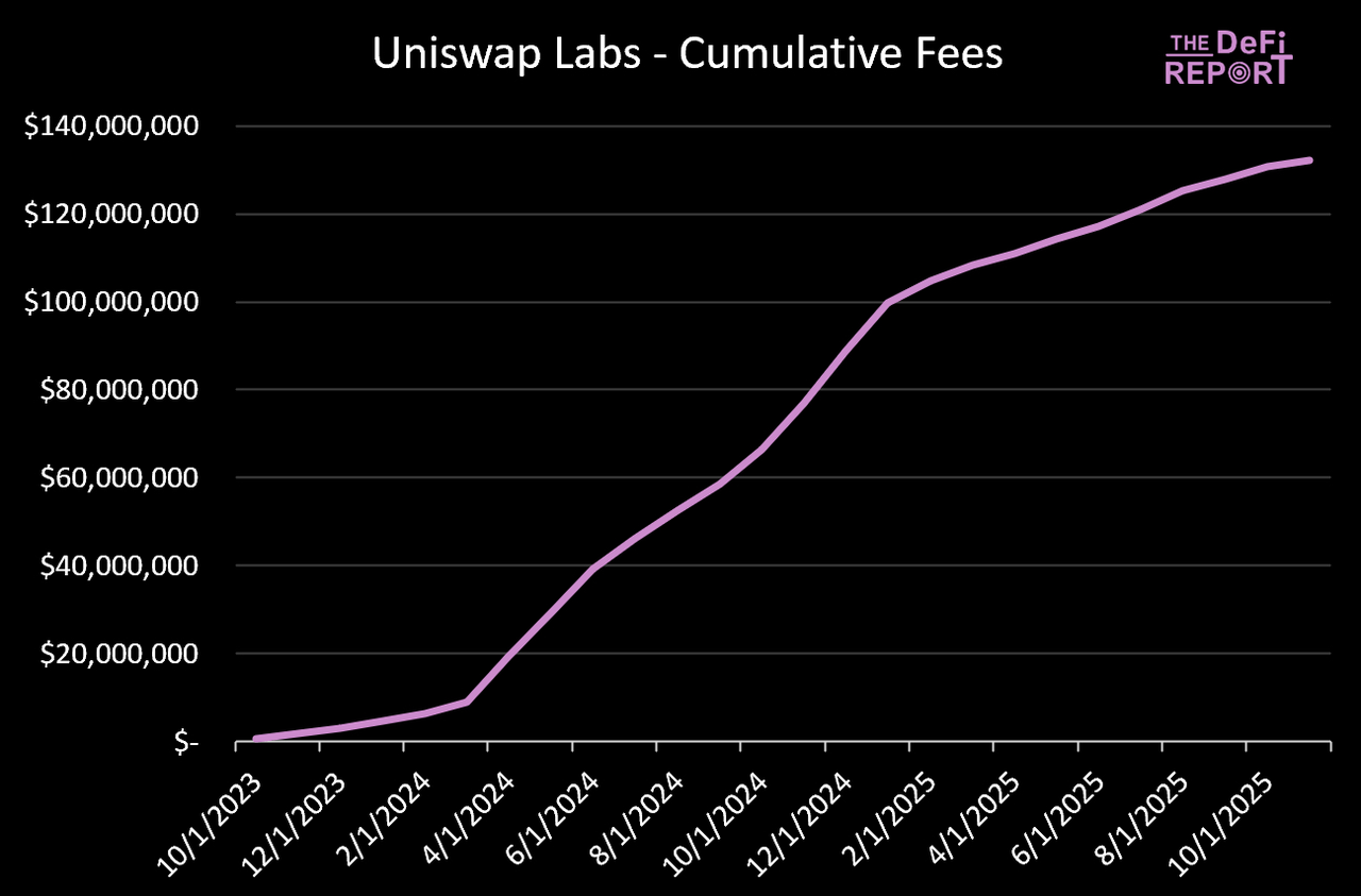 至今 Uniswap Labs 已积累了 1.32 亿美元。