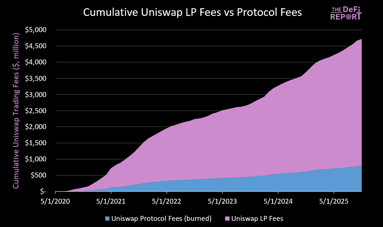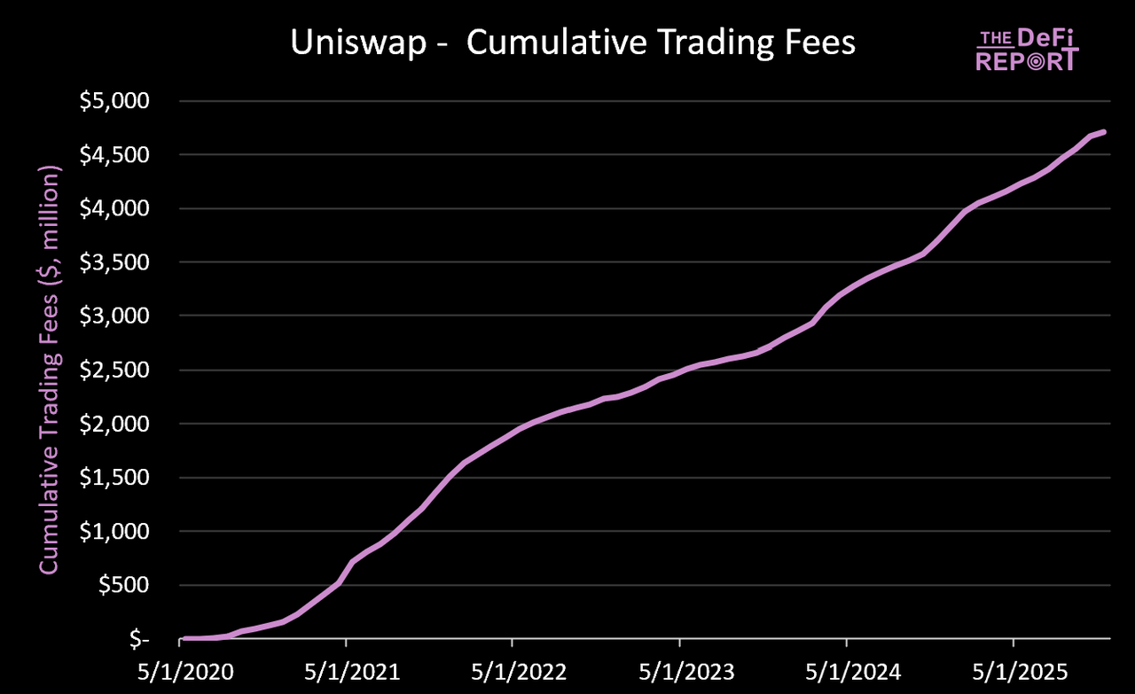 Uniswap 的主要收入来源是其交易业务。自成立以来,该协议已创造了超过 47 亿美元的交易手续费收入。