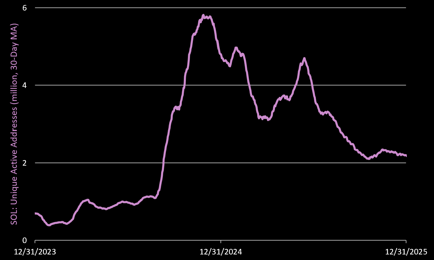 Solana 网络在第四季度平均每天有 220 万个活跃地址,较第三季度下降了 19%,原因是链上投机需求持续下降。
