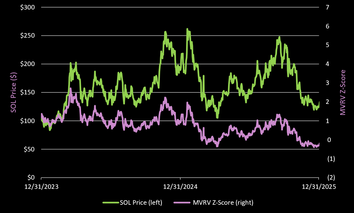 就「公允价值」而言,SOL 目前的交易价格低于其实现价格(代表网络上所有代币的「成本基础」)145 美元,其 MVRV 为 0.95。
