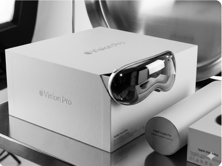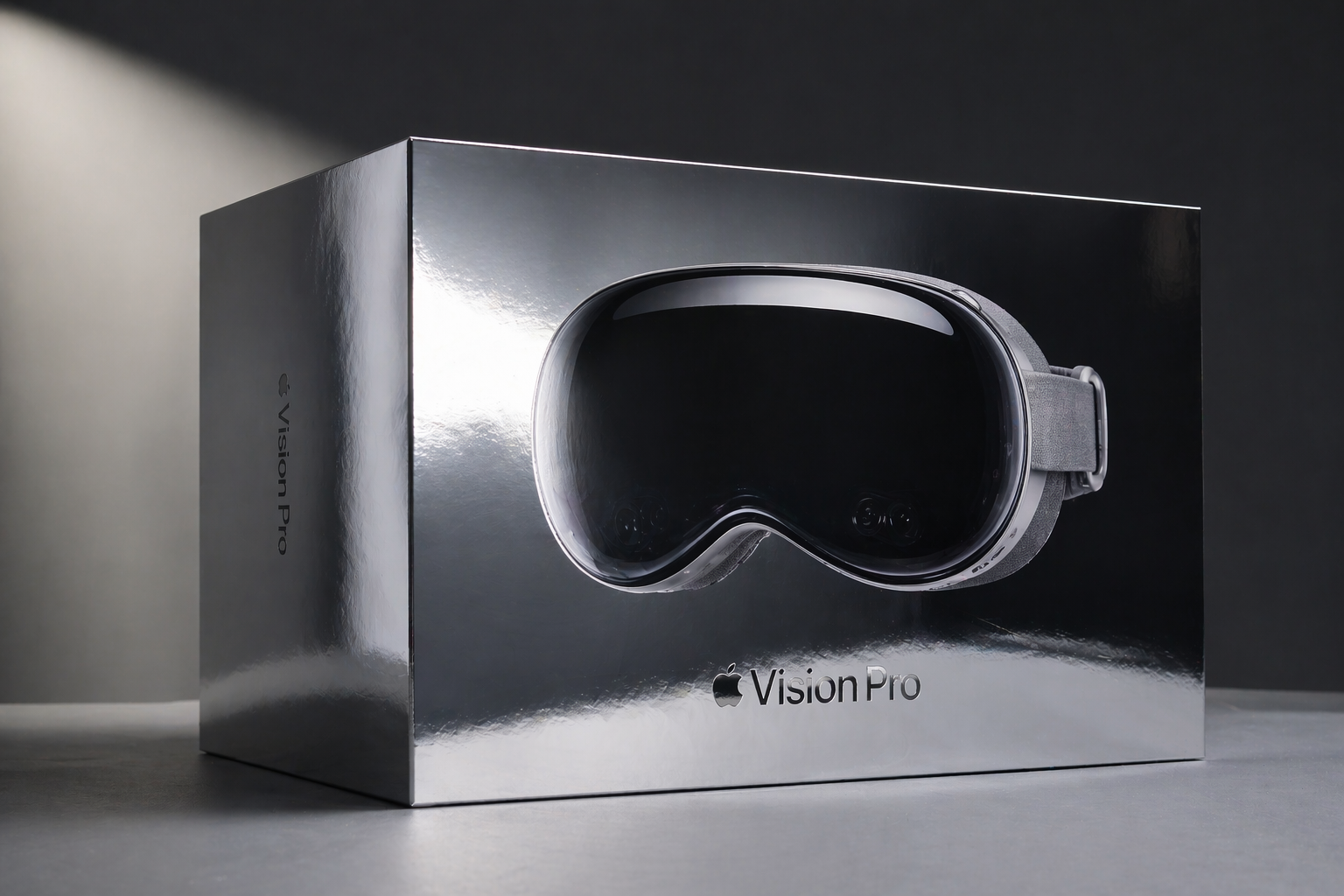 测试 prompt(产品摄影+人物写实): 「苹果 Vision Pro 包装盒特写,镜面金属反光,品牌文字清晰可见,工作室专业灯光,摄影棚环境,极致真实感。」