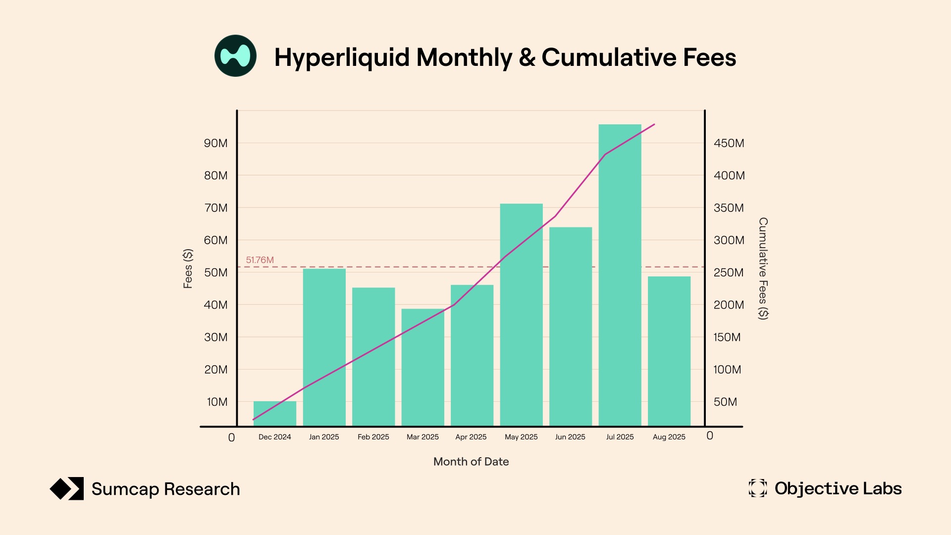 在为其社区创造和回报价值方面,HyperLiquid 已成为 DeFi 领域最令人印象深刻的故事之一。年初至今,该平台平均每月产生 5000 万美元的费用收入,年化收入预计达到 12.76 亿美元。